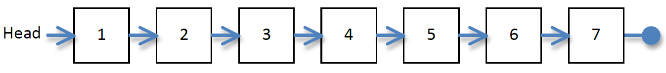 The first sequence is 1 2 3 4 5 6 7 -1, so a linked list is created as