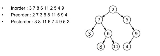 You will be provided with main.c and function.h. main.c contains the implementation of functions which build a tree by the inorder and preorder, and function.h contains the definition of tree node. You only need to implement inorder(Node *root) and postorder(Node *root) in function.c.