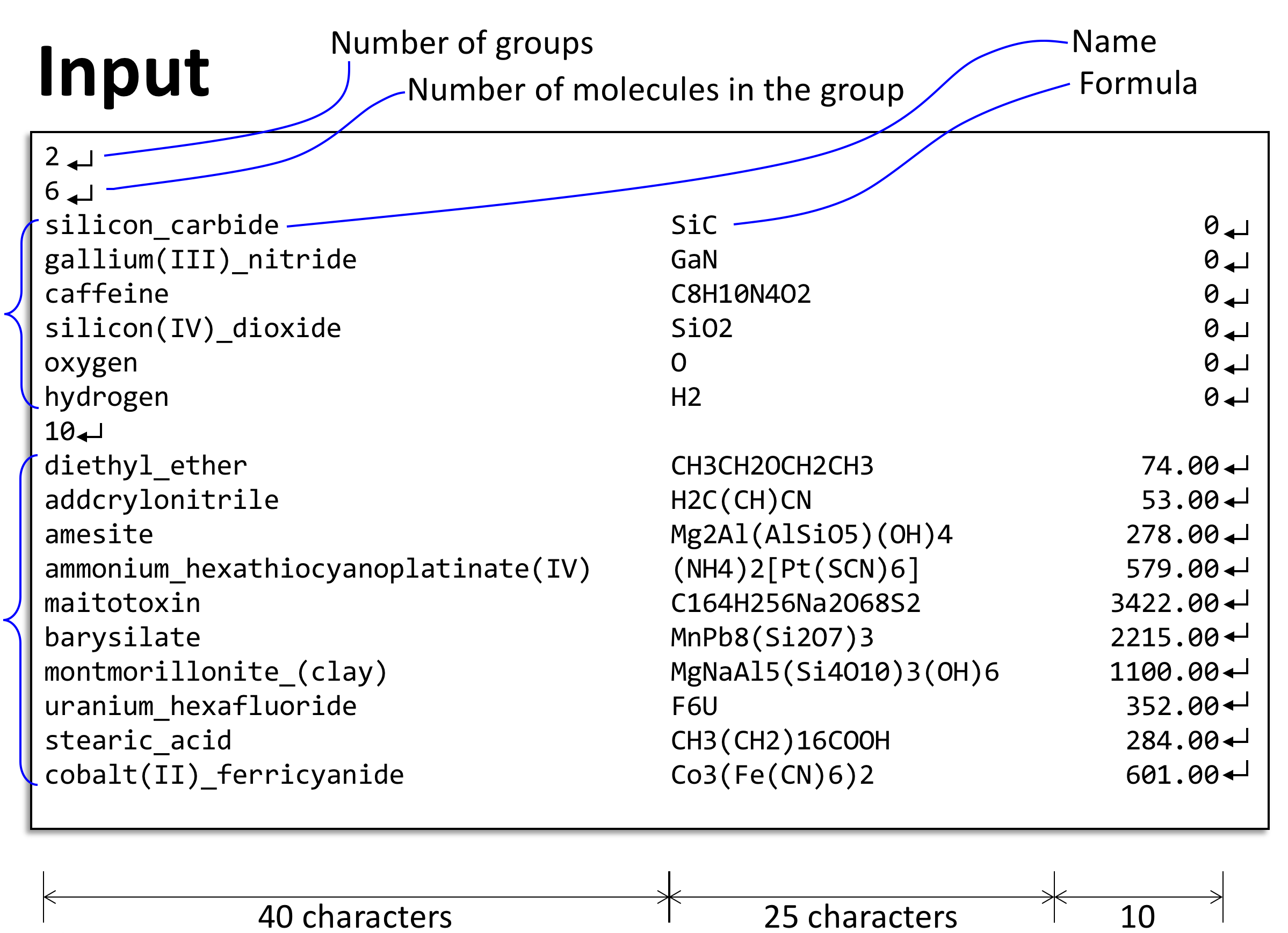 - All of the molecular masses in input 2~8 are given. (In other words, only input 9 and 10 need to calculate the masses by your own)