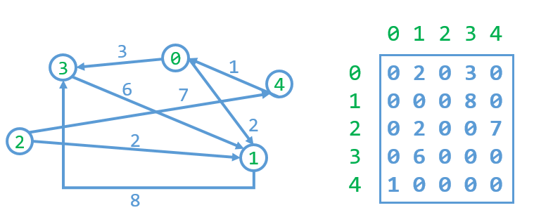 - 0 represents no edge between two nodes