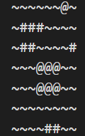 The character '~' means water. There are two types of islands, denoted as '#' and '@'.
