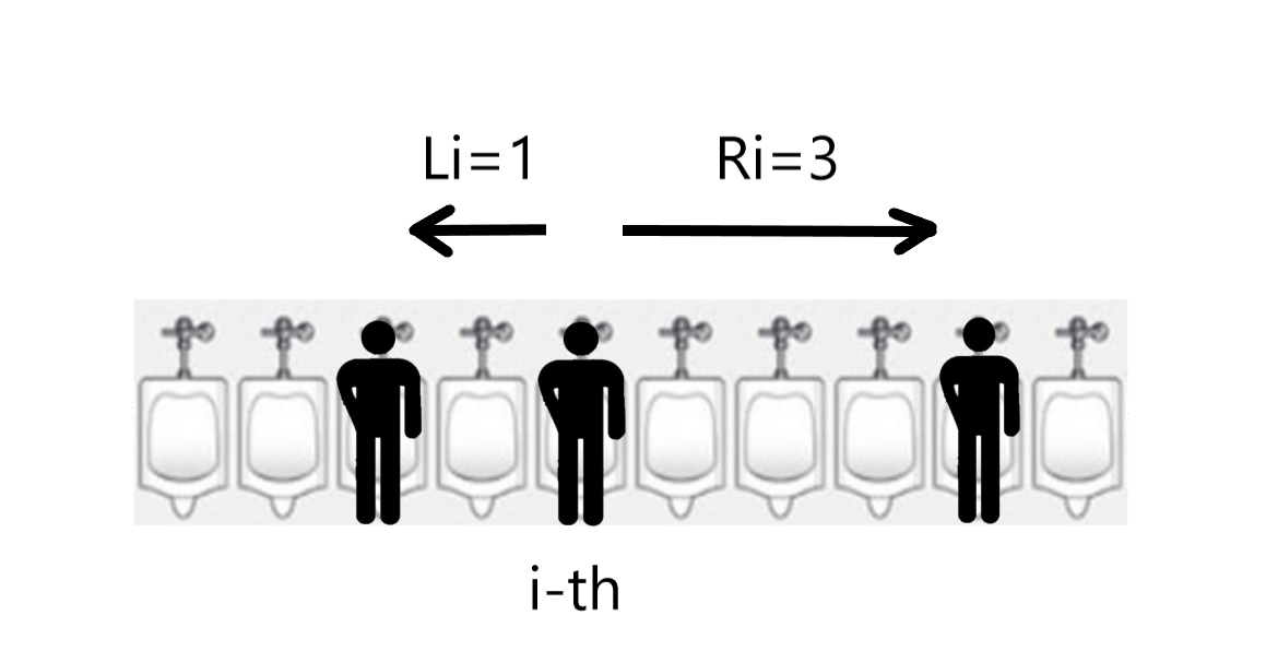 - Considering the i-th urinal (index increases from left to right), define Li and Ri as