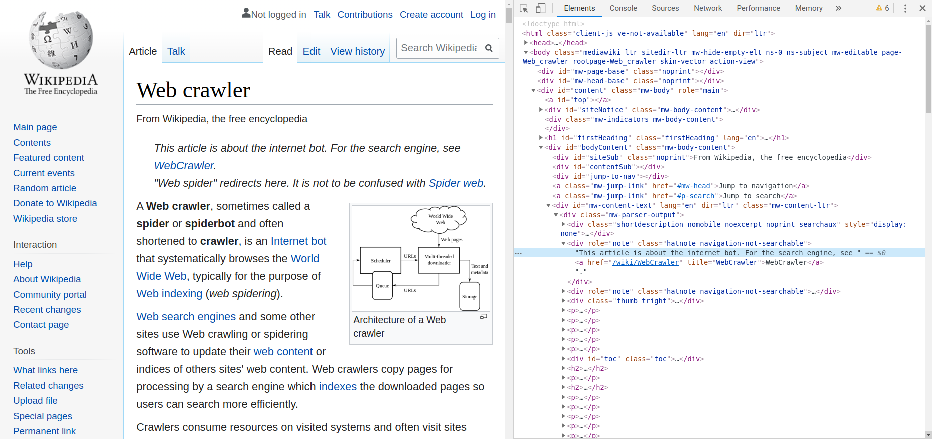 For example, if a Web Crawler visits the wikipedia webpage introducing "Web crawer" (the webpage is shown in the left part of the image) ...
