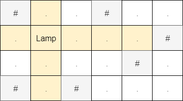 8 is maximum possible number of squares lighted by the lamp. (lamp placed on second row and second column)