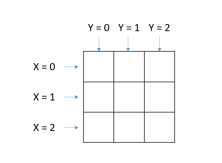 A map with all nine cards are placed, and two integers X, Y that represents which card the first player picked.