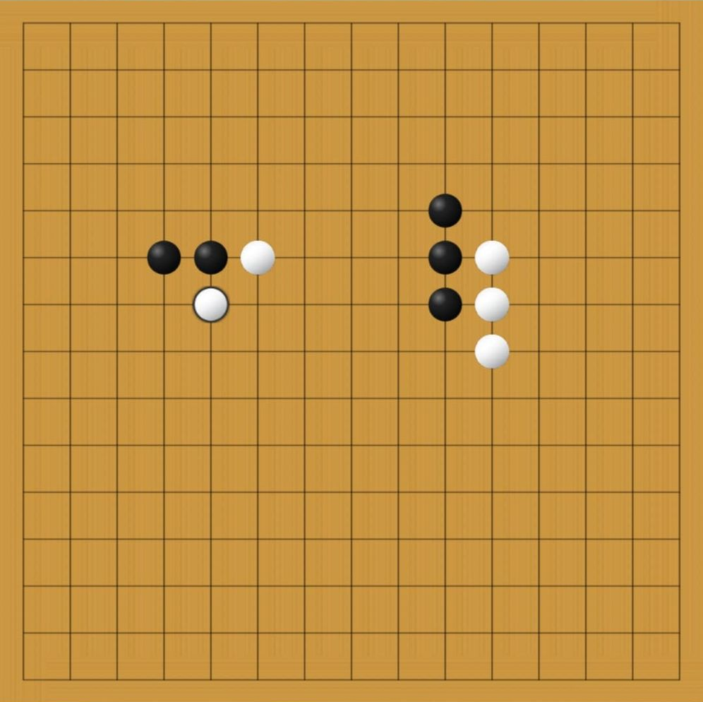 For each task, there are exactly 15 lines which contain exactly 15 characters each – the board you are given. 'b' and 'w' represent the stone placed by black and white respectively. And '.' represents an empty intersection.