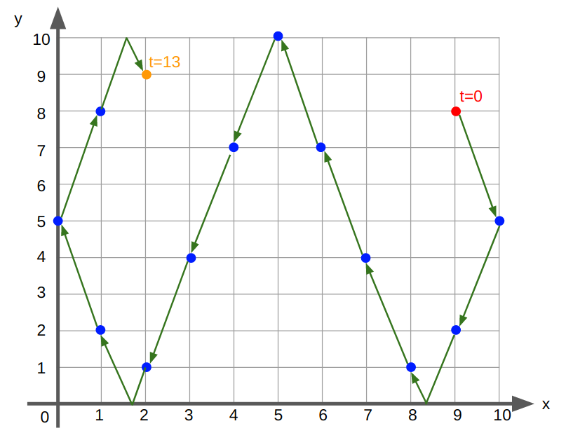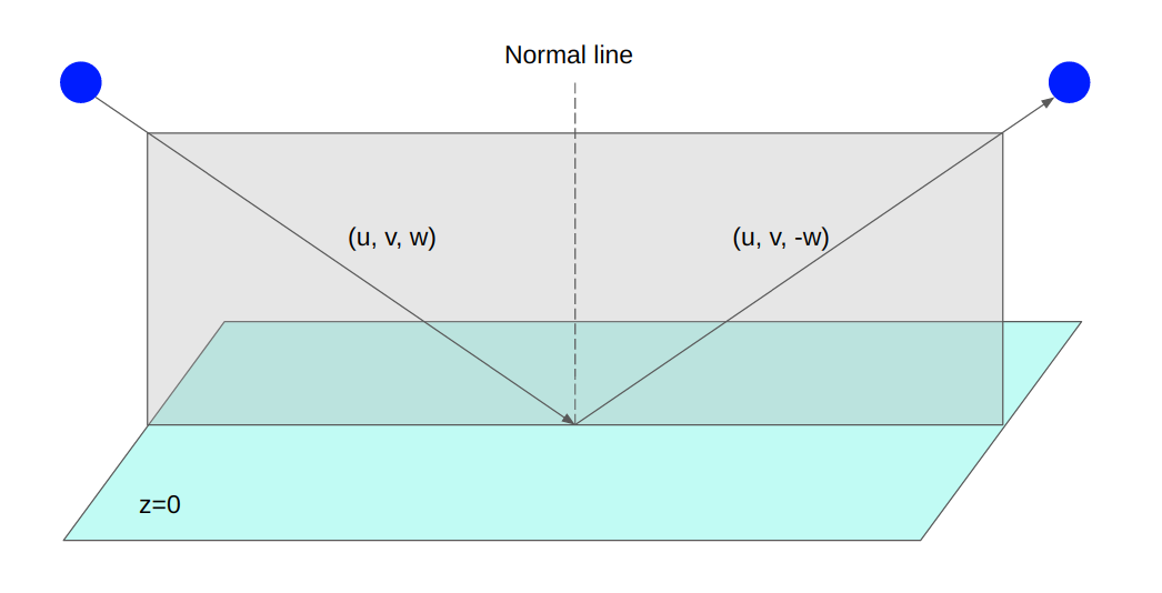 On plane z=0, the movement of the ball is illustrated in the figure below: