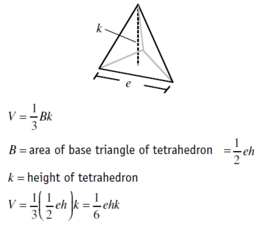 - double calculateVolume() - Return tetrahedron’s volume( 1/6 * base solid volume )