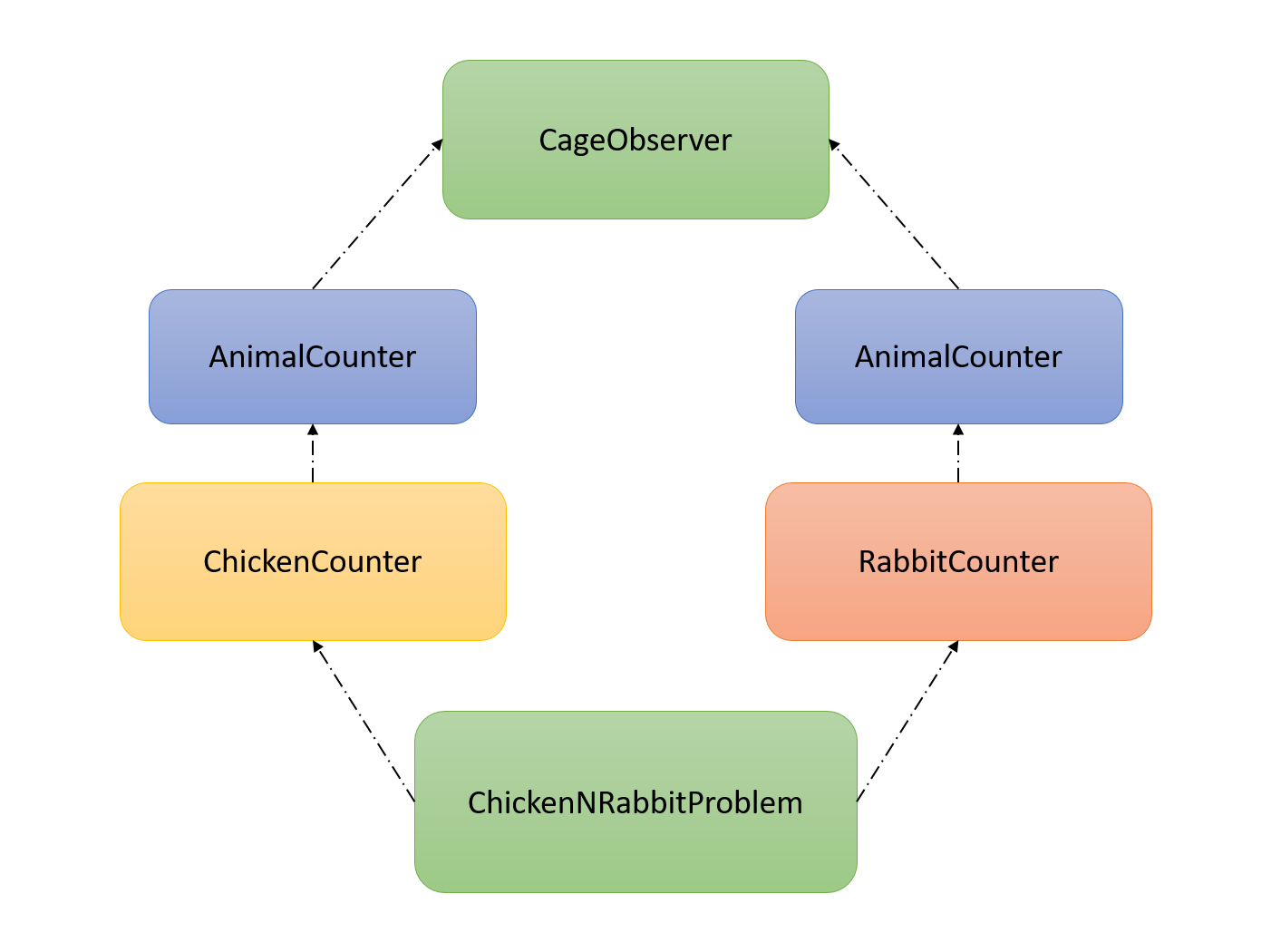 Only need to implement ChickenNRabbitProblem::Solve(). Use ChickenNRabbit-Problem:: CheckSolution (), ChickenNRabbitProblem::PrintSolution() and functions in class ChickenCounter, RabbitCounter for help.