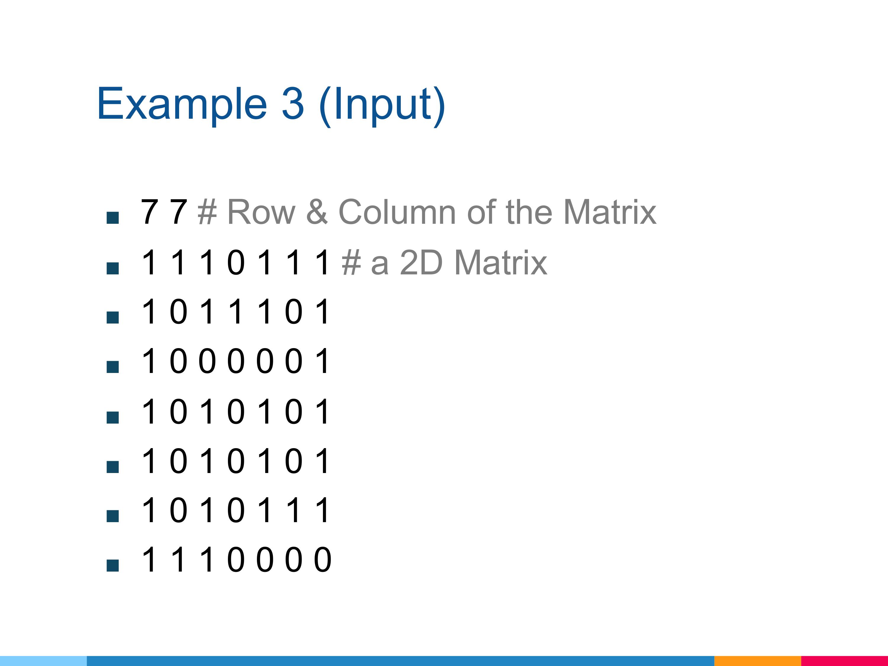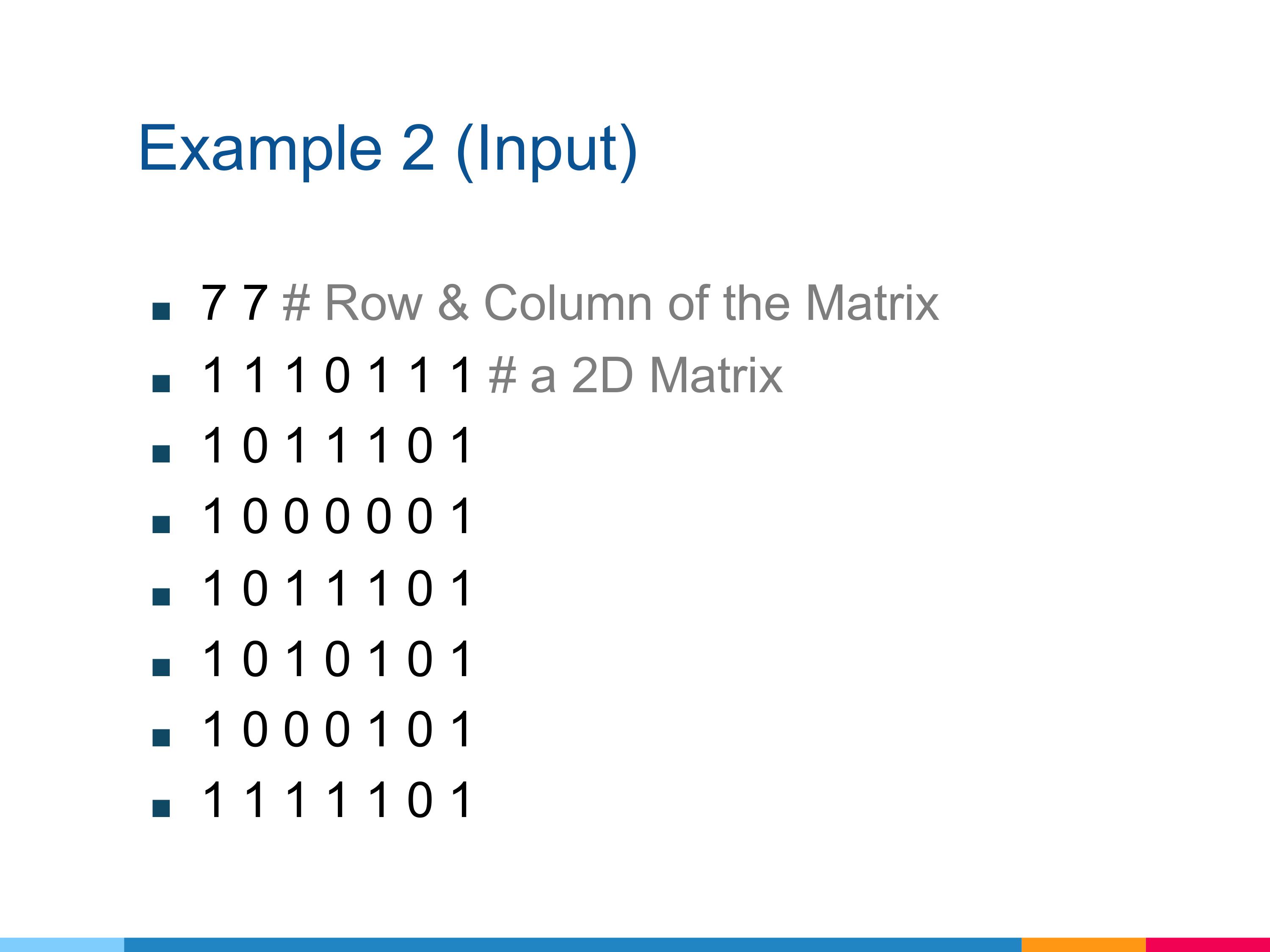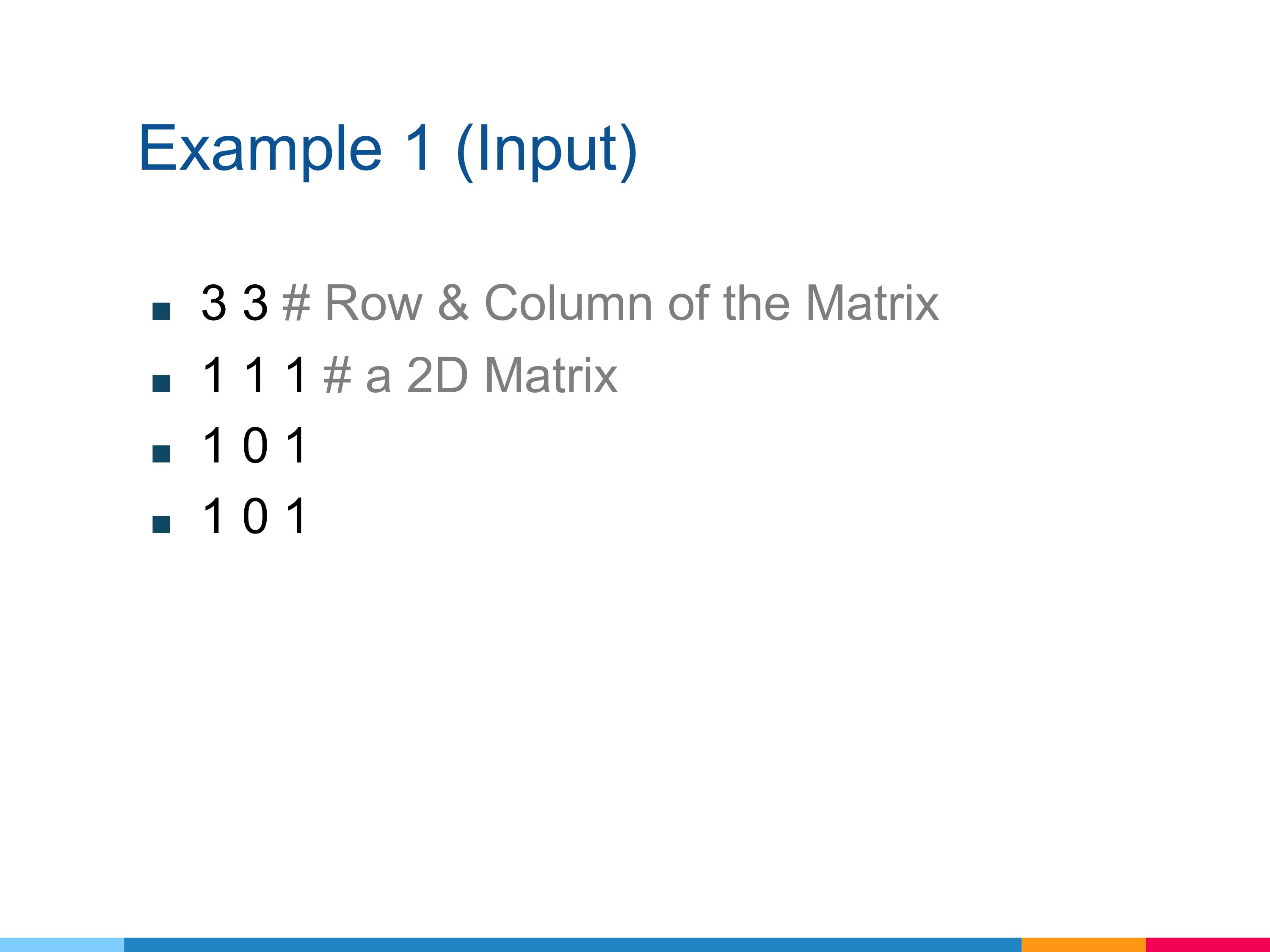 First line, you will get the row and column of the matrix.