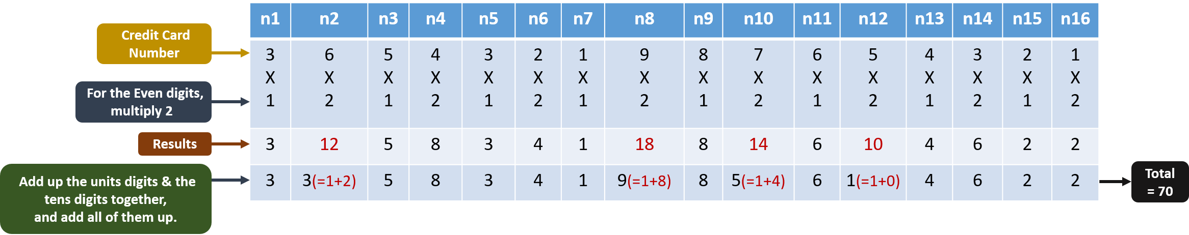 1. Sum up all the credit card numbers.