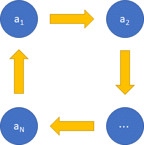 - For example, if the bomb explodes at the kth player (ak)’s hand, then ak dies and ak is removed from the sequence. At the same time, ak+1 obtains a bomb. The new passing sequence starting at the next round would be a1, a2, …, ak-1, ak+1, …, aN.