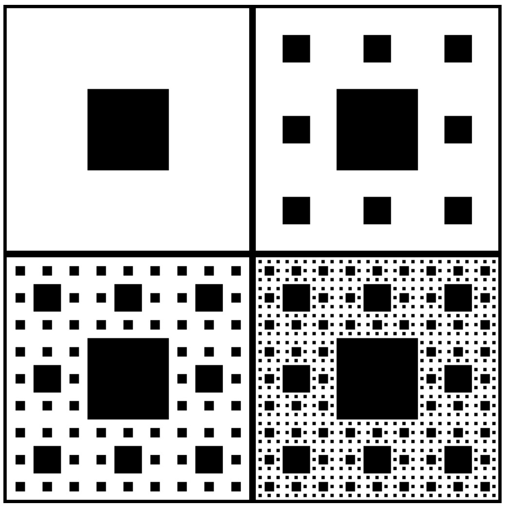 The Sierpinski Carpet is a self-similar pattern with 8 non-overlapping copies of itself.
