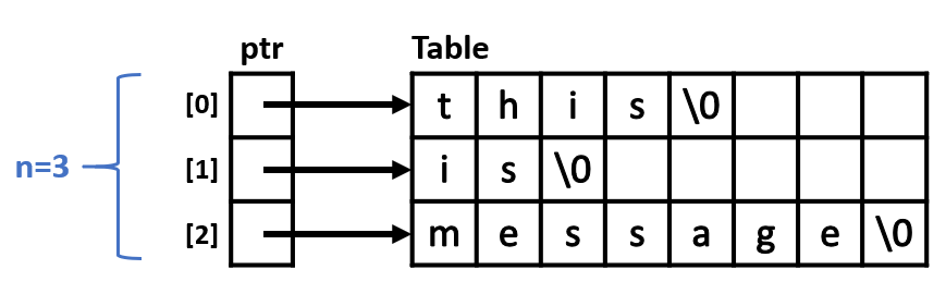 ptr[i] = &Table[i][0];