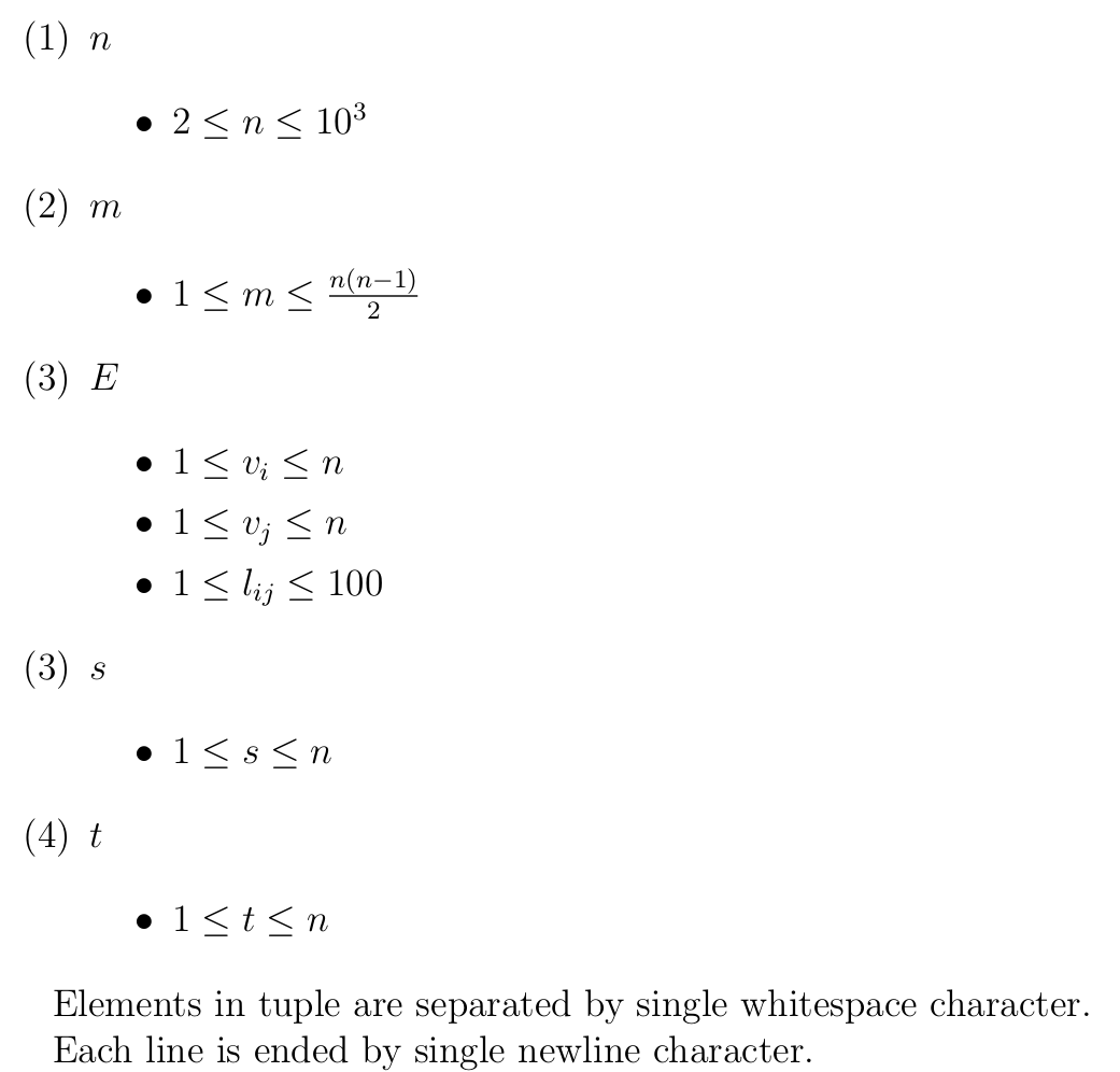 10 16 1 2 7 1 3 14 2 4 8 2 5 15 3 4 9 3 5 4 4 6 13 4 7 5 5 6 10 5 7 3 6 8 12 6 9 2 7 8 11 7 9 6 8 10 16 9 10 1 3 8